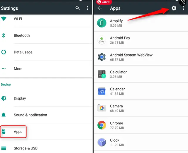 - Select the "Apps" option and open the gear option on the top-right section.